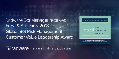 We’re thrilled to announce that Radware Bot Manager has been awarded Frost & Sullivan’s 2018 Global Customer Value Leadership Award… Read more »